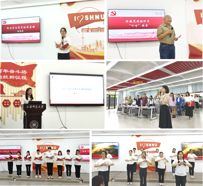 毕业生党员代表们带来了诗朗诵《青春有我,续写华章》以及合唱《不忘初心》,用美妙的声音与手势舞进行了精彩演绎,展现了青年大学生党员的风采。上海师范大学“阳光优秀党员”标兵杨岑岑代表毕业生党员发言,她表示作为毕业生党员,要坚定信念,争当“追梦者”;要脚踏实地,当好“实干家”;要踔厉奋发,勇做“弄潮儿”,在矢志奋斗中谱写新时代的青春之歌,在砥砺前行中绽放新时代的青春之花。