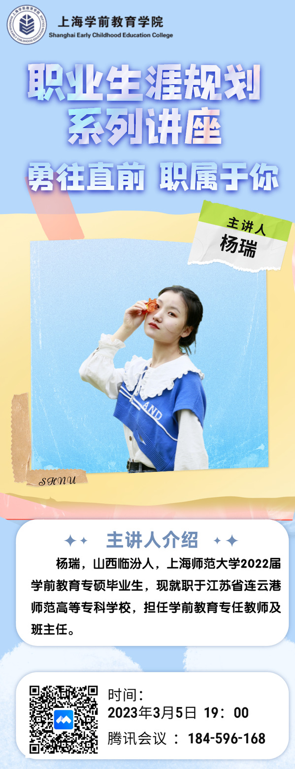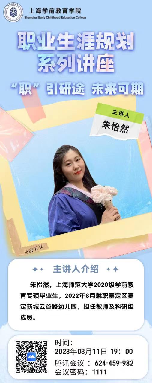3月11日,2022届学前教育专硕毕业生朱怡然同学以“职引研途,未来可期”为题,从“如何选择幼儿园”以及“上海考编流程”两个方面系统的向同学们介绍了她个人的就业历程,为同学们打开了未来的求职思路。朱怡然建议同学们可以多看、多听、多问,善用多元方法提前了解各幼儿园招聘信息,多方比较、留有备选,根据自己的个人特点寻找心仪的就业单位。朱怡然还详细介绍了上海市公办幼儿园的考编流程,为同学们分享了考编笔试与面试的具体内容与准备经验,鼓励同学们珍惜时光、早做准备,提升自我硬实力。