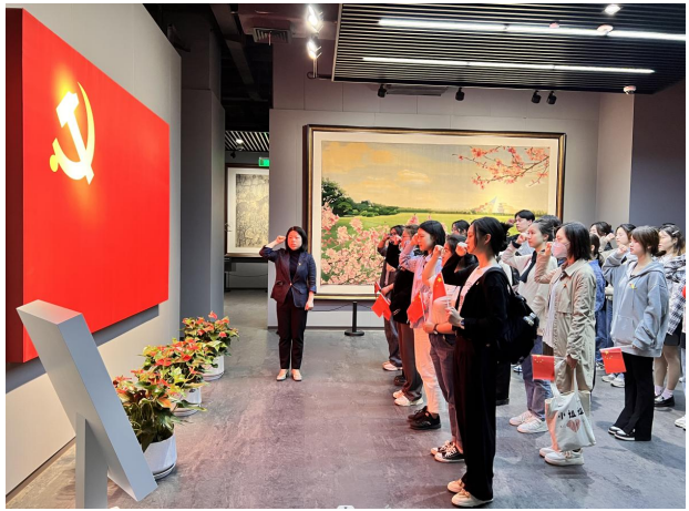 随后所有师生进入龙华烈士纪念馆内进行参观,探寻革命烈士生命尽头的印记,真切感受一段段壮烈激昂的峥嵘岁月,铭记共产党人不怕牺牲的革命精神。来到了入党宣誓展厅,由党委书记唐洁带领新党员在党旗下进行了庄严的宣誓仪式。她寄语新党员们,要学习革命先烈们对理想信念的执着追求,牢记党全心全意为人民服务的宗旨,牢记今天的誓言,不忘初心,砥砺前行。