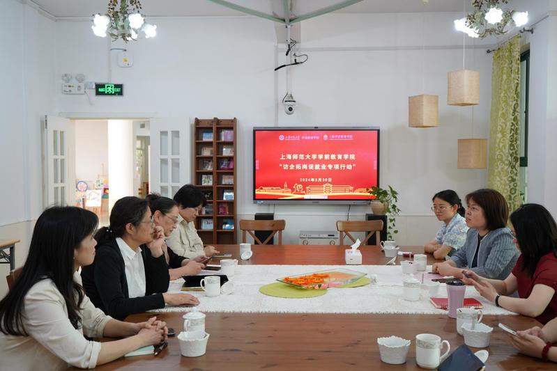 为全面落实党中央、国务院对高校毕业生就业创业工作的决策部署,拓展就业岗位信息渠道,深化多领域校企合作,推动学院毕业生高质量精准就业工作,5月30日下午,学院领导前往上海市虹口区体育幼儿园进行了“访企拓岗促就业”专项行动。学院党委书记唐洁、副院长何慧华、虹口区教育学院党总支书记汤国红、虹口区教育局小幼教科科长沈蕾、虹口区教育学院教研室副主任许玭、虹口区体育幼儿园党支部书记兼园长潘丽华以及学院专业负责人罗文蔚、学工办主任严雅琴和辅导员王丹娜参加本次活动。