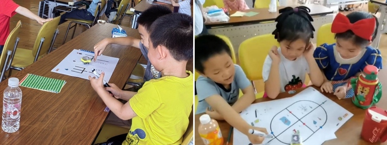 数字教育,求是创新。在幼儿教育领域中,无屏幕教育机器人的崛起正悄然改变着传统的教育模式,特别是在培养幼儿计算思维方面。教学团队创新性地将学院科研团队研发的幼儿STEM编程特色课程《公园游记》引入了香樟爱心学校系列课程,带领小学员们通过涂画、贴贴纸的方式,学习方向指令等编程知识,团队协作为嘟嘟机器人设计行进路线,成功到达目的地公园。志愿者们巧用无屏幕教育机器人、分组涂涂画画学编程的教学形式,帮助小学员们认识客体方位,培养其空间想象力与合作能力。