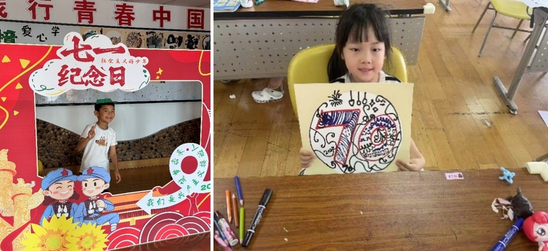 趣味手工,健脑益行。恰逢“七一”,开班第一课,小学员们就在教员的带领下重温了革命岁月,并亲手制作了红军帽,纪念历史,缅怀先烈。正值上海师范大学建校70周年之际,“师小囡”在教员的指导下用心学习线描创作技法,对上海师范大学的校徽图案和数字“70”进行独特的装饰,以线描作品为上海师范大学70周年校庆献礼。