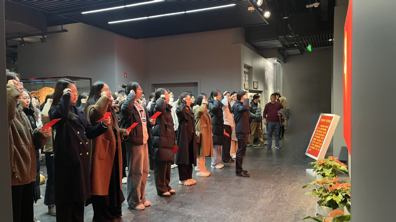 在龙华烈士纪念馆内,面对鲜红的党旗,教育学部全体师生党员举起右拳,庄严宣誓。誓言铿锵有力,承诺掷地有声,全体党员更坚定了为共产主义事业奋斗终生的决心,立志将以实际行动恪守对党的庄严承诺。
