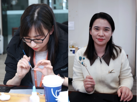 3月5日午后,香樟苑二楼多功能厅内流光溢彩,一场以“惊艳两千年的一抹幽蓝”为主题的非遗点翠手作体验活动温情启幕。正值第115个国际劳动妇女节来临之际,活动以指尖艺术对话千年技艺,用匠心巧思礼赞巾帼风华。活动期间,学院党委书记杨成龙代表学院党委对全体女教职工致以节日问候,感谢大家为学院改革发展作出的积极贡献,并与大家共话非遗传承的时代价值。
