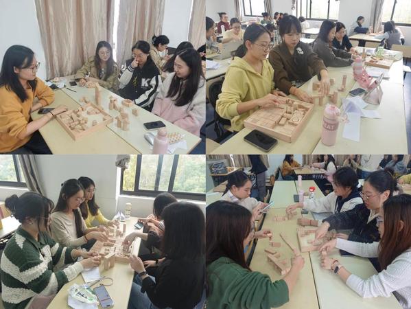 搭积木环节崔卓缘选取经典儿童绘本中的生动画面作为拼搭参考,让现场志愿者们分组进行积木搭建并介绍搭建思路,她针对志愿者在引导孩子观察图画、拆解拼搭任务、鼓励孩子尝试等方面的不足进行纠正,帮助志愿者们快速掌握积木拼搭引导技巧。