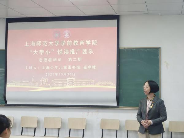 为进一步提升“大带小”悦读志愿者开展绘本带读活动的实用技巧,10月30日上午,学院再次邀请上海少年儿童图书馆馆员崔卓缘,开展本学期第二期志愿者培训活动,35名悦读志愿者参加本次培训。
