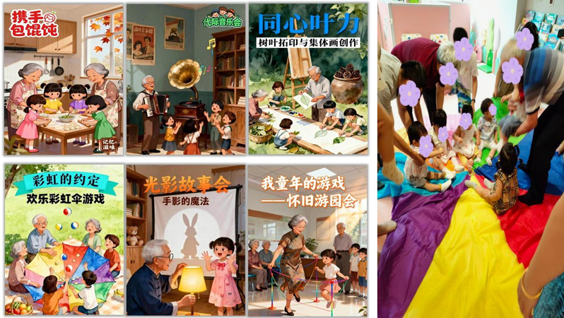 为破解“空间相邻但服务分离”的困局,团队联合街道开展多场“祖孙同乐”实践活动。在专业教师带领下,老人带着孙辈共同参与手工、故事等互动。王爷爷欣喜地说:“活动要多办!孩子有伴,我们也开心,感觉自己变年轻了。”现场的欢声笑语,成为“老幼共托”理念最温暖的诠释。