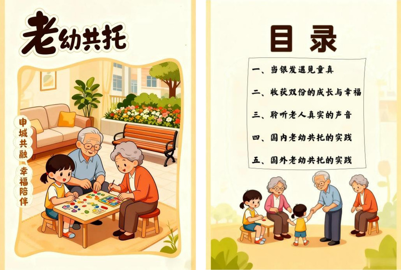 为提升公众对“老幼共托”的认知,团队推出10期科普推文,并历时三个月、十二轮修改完成《老幼共托市民宣传手册》。手册在专家指导下,吸纳20组家庭意见优化内容,确保通俗实用。一位年轻妈妈表示:“原本以为只是简单合并,看了才发现从空间到活动都充分考虑了两者特点与安全,现在完全放心了。”