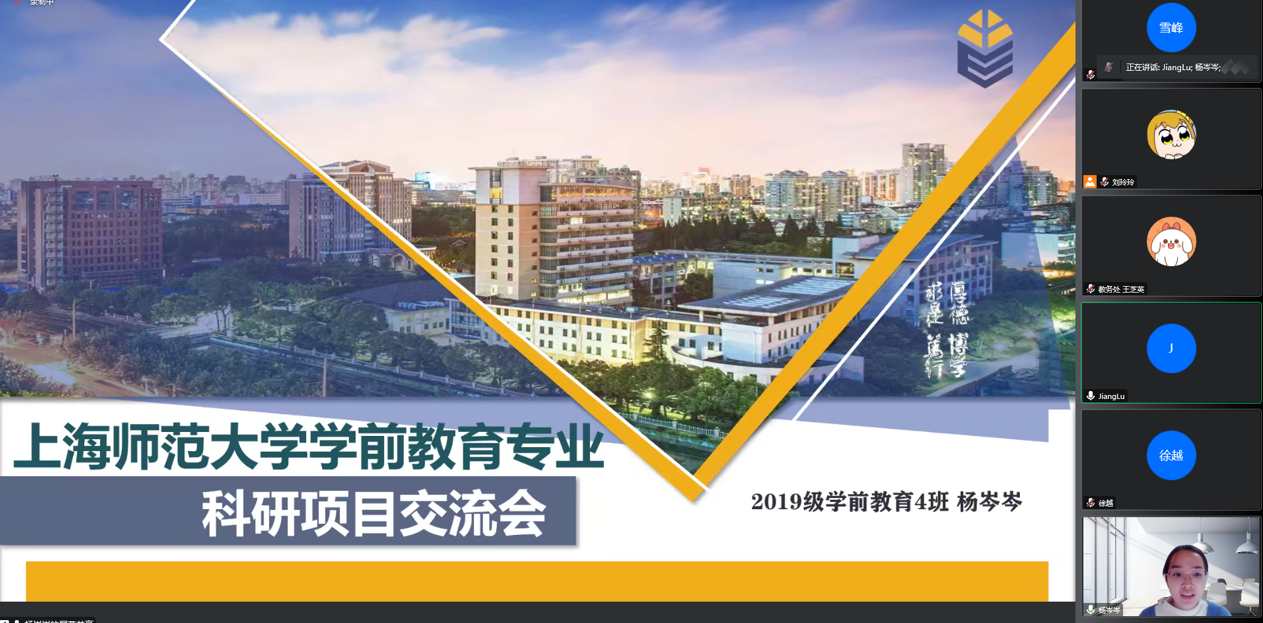 杨岑岑立足专业、悉心钻研,多次带领班级同学参加科研创新项目。大二时,与组员一起设计制作了适用于幼儿园的中国传统文化交互式电子绘本系列课程,向幼儿普及传统文化,荣获“三创赛”市级优胜奖、校级三等奖和“互联网+”校级银奖。大三时,主持校级大创项目《家庭中幼儿进餐行为及餐间亲子互动研究》,分析探讨亲子互动行为和幼儿进餐行为的关系,并制作《1-3岁家庭喂养指导手册》,并荣获“互联网+”校级铜奖、科研项目三等奖。