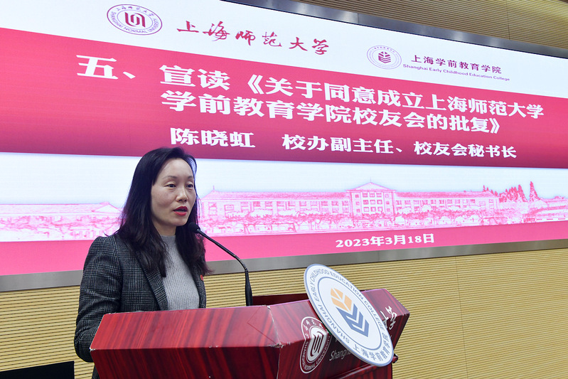 上海师范大学副校长、校友总会副会长蒋明军向学校最年轻的校友会的成立表示祝贺。他指出,校友是母校永远的牵挂,是母校最重要的名片,期盼校友们“常来母校身边”“为母校代言”“将母校常放心头”,在各自的工作岗位上不忘立德树人初心,继续以奋斗之我,为实现“幼有善育”“幼有优育”的目标贡献自己一份力量,共同努力把上海师范大学建设成具有重要国际影响力、教师教育特色鲜明的高水平综合性大学。